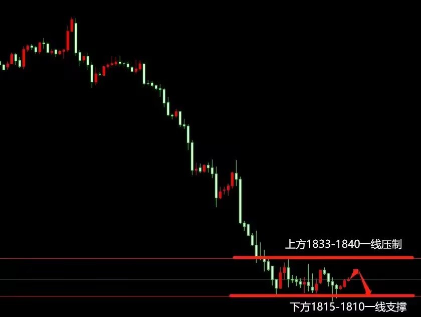 当然了不管是前者还是后者,都是由市场砸盘所致,毕竟今日而言,重要数据就是非农行情,当前黄金价格受到趋势线的压制,5日均线正在向下移动至1830下方。在价格未能突破并站稳该位置之前,短期仍然处于弱势状态。在低位横盘之后,可能会出现进一步下探的需求。上方短期重点关注1833-1840一线阻力,下方短期重点关注1815-1810一线支撑。